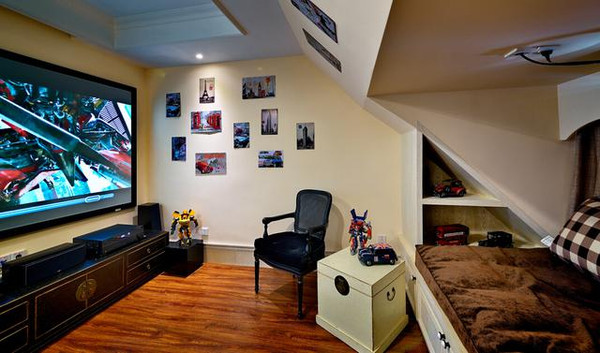 地下室是我的書房兼茶室,老公的影音室,原來兩個下沉式天井中改造了一個成為家庭健身房,外加儲藏室、客房和保姆房。