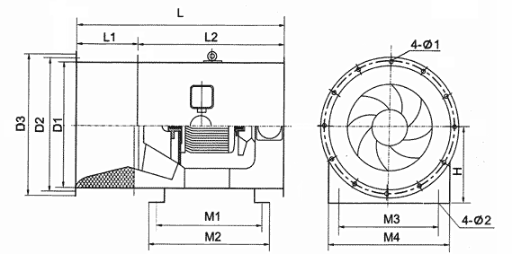 HL3-2A高效低噪混流風(fēng)機(jī)安裝及外形尺寸