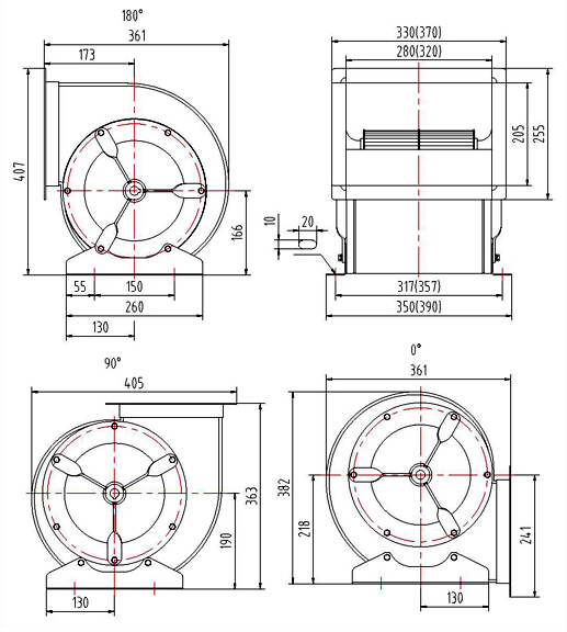 風機可制成右旋轉和左旋轉兩種型式,從電動機一端正視,葉輪順時針旋轉,稱為右旋轉風機,以“右”表示;葉輪逆時針旋轉,稱為左旋轉風機,以“左”表示。