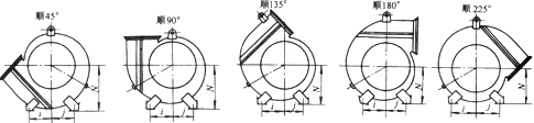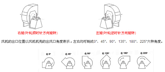 引風機制成單吸入。機號有№4、5、6.3、8、10、12.5六種。風機可制成右旋轉(zhuǎn)和左旋轉(zhuǎn)兩種型式,從電動機一端正視,葉輪順時針旋轉(zhuǎn),稱為右旋轉(zhuǎn)風機,以“右”表示;葉輪逆時針旋轉(zhuǎn),稱為左旋轉(zhuǎn)風機,以“左”表示。