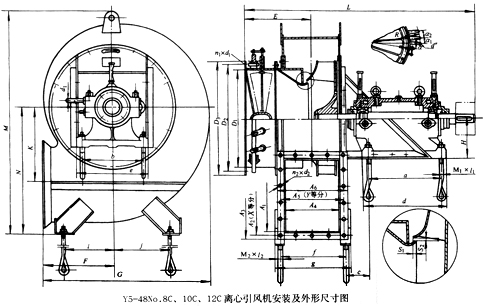 Y5-48No.8、10、12.5離心引風機安裝及外形尺寸
