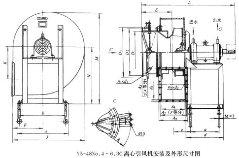 Y5-48No.4~6.3C離心引風機安裝及外形尺寸