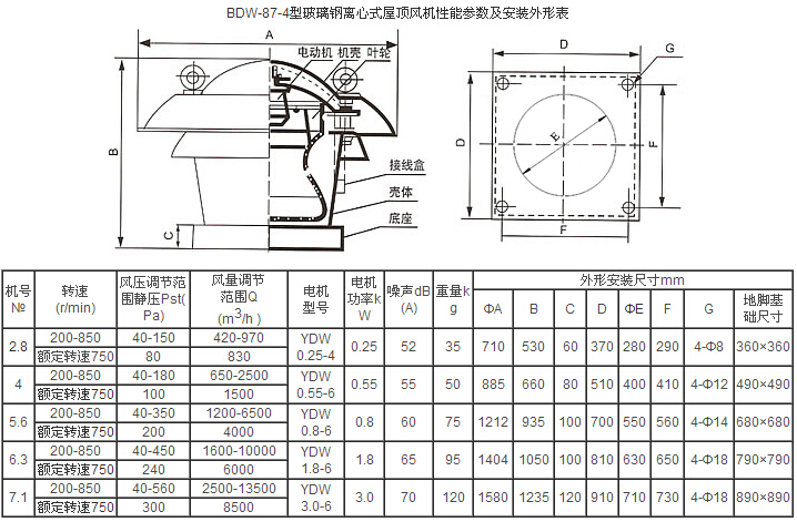 BDW-87-4型玻璃鋼離心式屋頂風機是本公司自行設(shè)計、制造的新產(chǎn)品。該風機采用無級調(diào)速電機,選用優(yōu)質(zhì)玻璃鋼材料精工制作而成型,風機性能、噪聲經(jīng)檢測均達到設(shè)計要求,具有效率高、耗電少、重量輕、耐腐蝕、運行可靠、安裝簡單等特點。噪聲可限制在65(A)分貝以內(nèi),如噪聲值尚不能滿足要求,可在基礎(chǔ)和風機之間加消聲箱。本公司可為用戶代為設(shè)計、并加工制作。